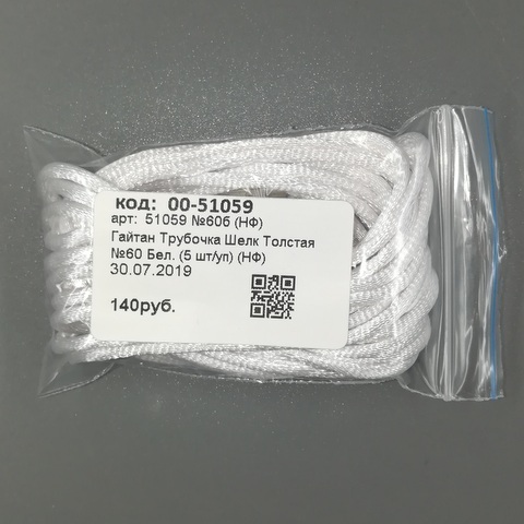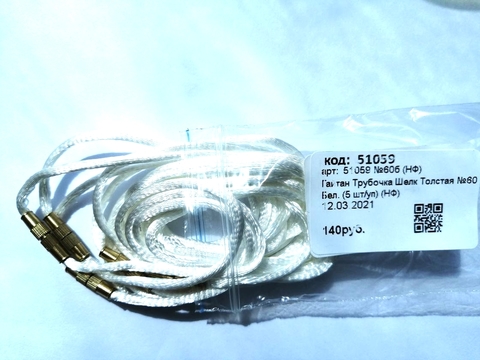 Гайтан (тесьма) Трубочка Шелк Толстая №60 Бел. (5 шт/уп) (НФ)