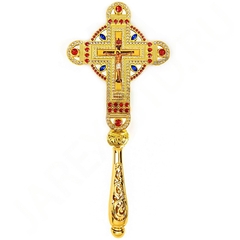 Крест напрестольный №6-6 сложный малый золочение с камнями [3380030]