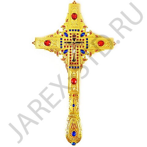 Крест напрестольный, гравировка, камни, цвет "под золото"; h27.Арт. КН-475