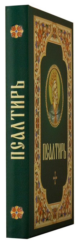 Псалтирь на русском языке издана на белой бумаге в твердом переплете зеленого цвета. Обложку Псалтири украшает растительный орнамент и изображение (в медальоне) головы царя Давида. Как следует из библейской традиции, юный Давид ублажал слух владыки Израиля Саула, наигрывая на киноре — древнееврейском музыкальном инструменте. Кинора была не столь распространена в Средиземноморье и переводчики Септуагинты на греческий язык заменили ее более знакомым псалтерием. Это был еще один известный древним грекам щипковый многострунный инструмент из семейства цитр. Таким образом, книга псалмов стала называться Псалтирью.